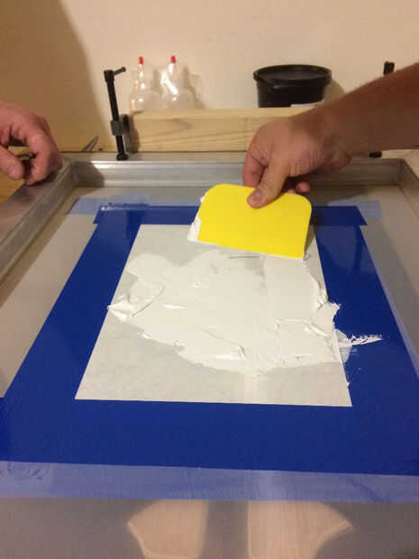 Esparcir la tinta uniformemente en una capa delgada sobre todo el diseño. La tinta debe ser no menos de 1mm de profundidad, demasiado poco y obtendrá puntos secos en su impresión. Si la tinta es demasiado pensar, más de 3-4mm, puede ser empujado a través del papel y piscina en lugares que no quería que la tinta. Uniformidad total no es primordial pero atención general al detalle producirá un mejor resultado.