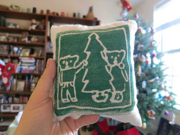 tradicionalmente, hacemos nuestras tarjetas de Navidad con un bloque de diseño impreso. Ahora que nuestros hijos son mayores, están haciendo nuestras tarjetas de este año. Mi hijo dibujó un Santa y mi marido hizo las "separaciones de color". He