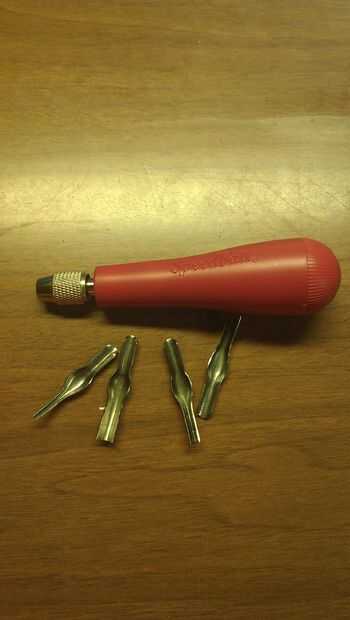 Para colocar las cuchillas en el mango de lino, simplemente Desenrosque la parte superior de la herramienta, hay una ranura para insertar la hoja en. Después de la hoja está completamente en, tornillo de la parte superior de la parte posterior de la herramienta, y asegúrese de que está muy apretado para que la hoja de no resbalar o caerse mientras se talla.