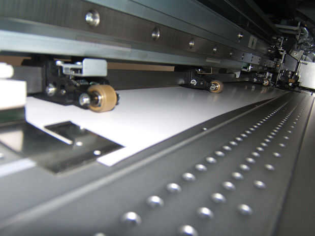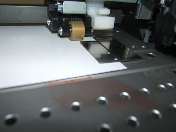 Los rodillos deben colocarse siempre debajo de las marcas de plata visibles en la impresora (consulte imagen secundaria). Además, si sólo tienes rodillos colocados en posición sobre la prensa. Básicamente, usted quiere un rodillo debajo de cada plata de la marca está dentro de la longitud de los medios impresos.