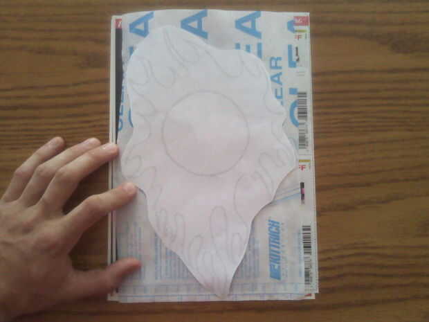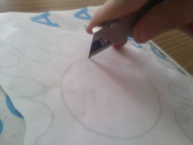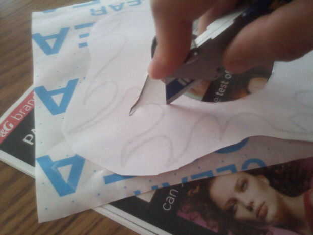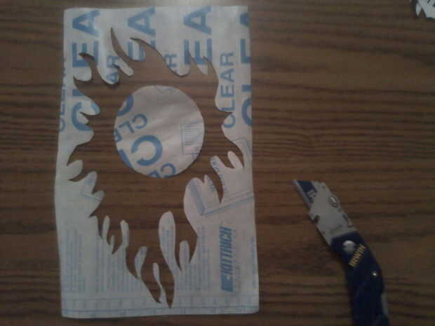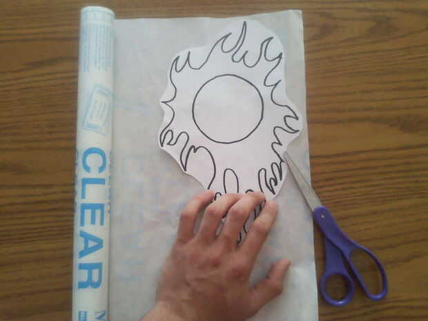 * Nota: Si coloca el diseño sobre el lado claro, no la parte que cubre el papel o el papel de contacto, debe no terminan hacia atrás cuando usted pegada a su plantilla. (Si esto suena confuso al leerlo, debe hacer perfecto sentido cuando usted está haciendo la plantilla.