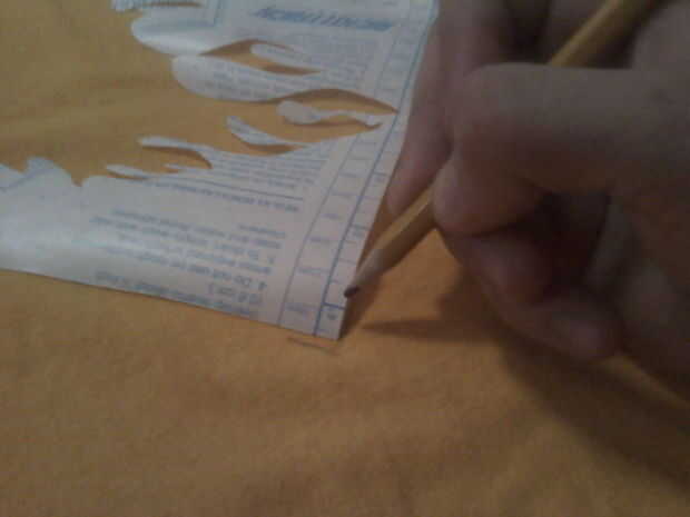 Poco a poco con su navaja, corte nuestro las áreas que desea ser retocadas en su camiseta.