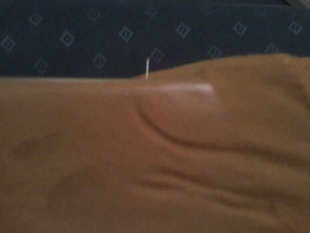 * Nota: Asegúrese de que esté apretado contra la tela! Mina no era, y el diseño salió todo borroso, así que tuve que ir alrededor del diseño, punteado con un pincel, con un color similar a la camisa para intentar parchearlo para arriba.