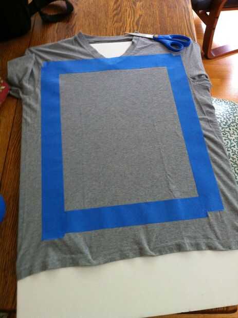 (Entonces, averiguar donde desea que su impresión para ser. Me gusta mi impresiones sobre 4 o 5 pulgadas del collar, pero sólo yo. Después de poner la pantalla hacia abajo en la camiseta, hacer un esbozo de la pantalla con la cinta. Hacer un buen trabajo de esto porque si arruinara, usted tendrá un tiempo difícil alinear la pantalla cada vez.