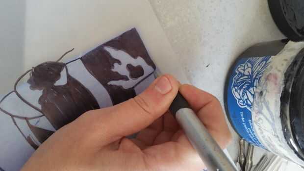 Impresión de linóleo con varios bloques de color (3 / 7 paso)