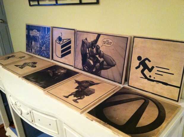 Este es un proyecto de buen fin de semana ya que se necesita tiempo para secar entre pasos. Es fácil empezar un sábado y terminar (varias) el domingo. A pesar de que son todos bastante nerd, puede hacerlo con fotos o cualquier gráfico que usted elija. Mi casa pasa a ser habitado por los jugadores de videojuegos. Si tienes cualquier duda sobre algún paso del proceso, por favor comentario y yo haremos mi mejor para contestarte!