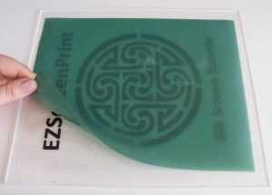 Lugar EZScreenPrint plantilla en obras de arte, shinny el lado hacia abajo.