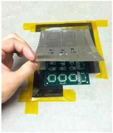 Levante stencil de la PCB. La elevación de la presión debe ser coherente con el fin de no "manchar" la pasta de soldadura por debajo de la plantilla.