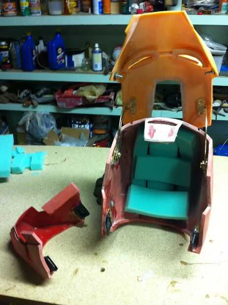 después de obtener el casco de ironman por mi traje y tener mi amigo hacen un molde de látex. decidí probar a hacer un casco de la máquina de guerra. me hizo la preparación y lo pintado luego se dio cuenta que no tenía ningún spray negro en mi arsena