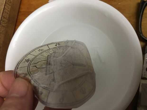 Coloque a la tela sobre un trozo de papel de pergamino y tela mojada con acetona al 100%.