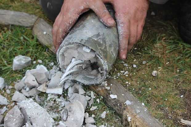 Mientras está todavía caliente tomar el Casting (aún en el matraz) y sumergirse en un baño de agua. El cambio rápido de temperatura provoca el POP a agrietarse y desmoronarse.