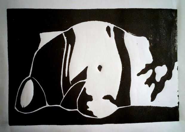 Impresión en blanco y negro linóleo