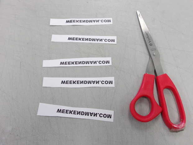 Cortar las palabras o imagen hacia fuera y dejando bastante espacio alrededor del lado para sujetar el papel firmemente.