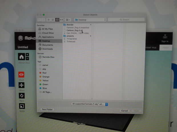 Ejecutar el software de Makerbot. Haga clic en "Añadir archivo". Encontrar el archivo en el ordenador o unidad USB.