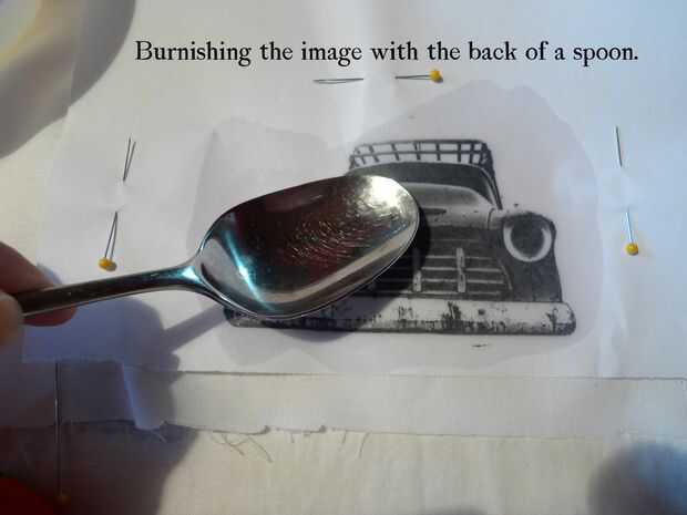 La superficie de impresión/pulido debe ser bastante duro - no tan duro como una tabla y no tan suave como una toalla encima de una mesa; periódicos y un trozo de tela dan sobre la dureza correcta. Piense en cómo el papel se doblaría si fueron puliendo sobre una superficie realmente suave. Pensar en su falta de superficie sobre una superficie muy dura. Busque algo para darle una superficie intermedio.