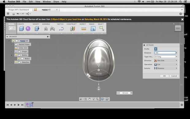 Y, con el fin de obtener el material de soporte hacia fuera, tuve que hacer un pequeño agujero en algún lugar de la concha. Dejé de dibujar un círculo de 5mm y usarla para cortar la cáscara en la parte inferior del modelo.