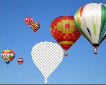 Utilizar la herramienta pluma para hacer la estera de la imagen, cada globo es seleccionado, luego se corta; Haga clic en el botón en la esquina inferior derecha para crear una nueva capa y luego pegar las capas recortadas a una nueva capa.