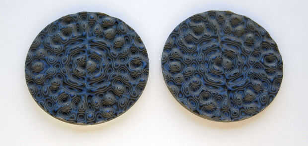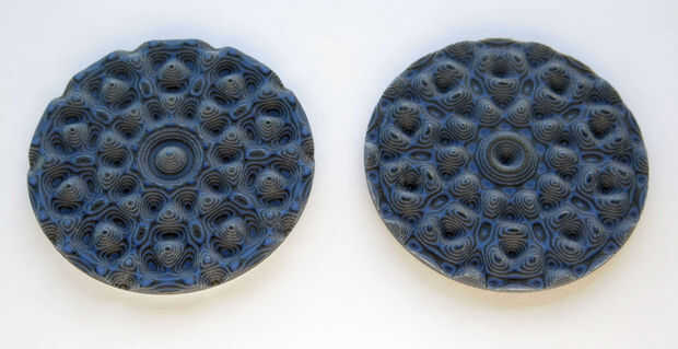 Porque las impresoras 3D de Objet tengo acceso a muelle 9 pueden imprimir en diversos colores, aunque se trato de fabricar algunos de estos como un experimento. Los modelos sólidos en OpenSCAD era un poco tedioso: era fácil de tallar la superficie de una pila de láminas intercaladas, pero los objetos resultantes eran tan complicados tardó varias horas para rendir por lo que no experimentar demasiado violentamente.