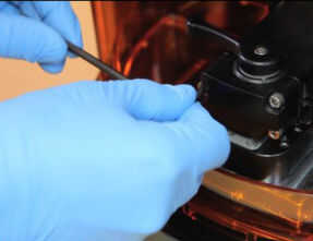 A. Utilice la Tecla de Alan ranuras en el brazo de impresión para aflojar la cabeza de la construcción (tighty righty - loosey izquierdo)