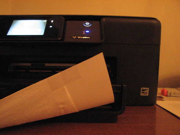 Coloque su papel con el papel higiénico en él en el papel boca abajo en la parte de entrada de papel de la impresora.