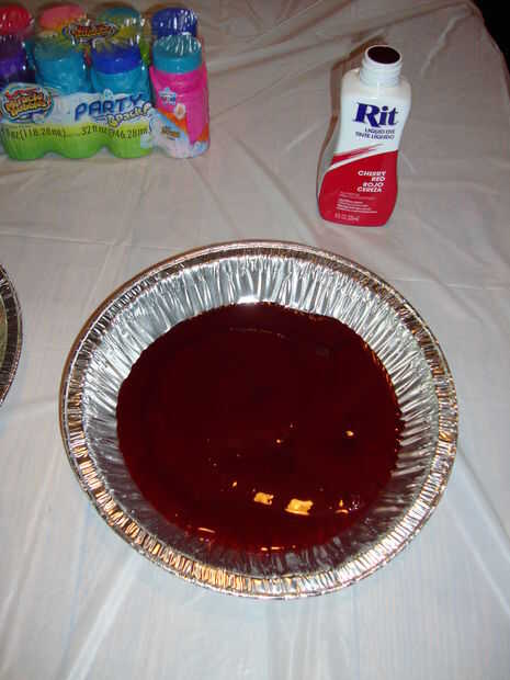 Coloque su tinte en la tartera un complemento en sus burbujas.  Usa colorante líquido, pero en polvo tinte funciona bien también.  (y en algunos casos mejor porque en lugar de agregar agua solamente añadir las burbujas para mezclar el tinte)