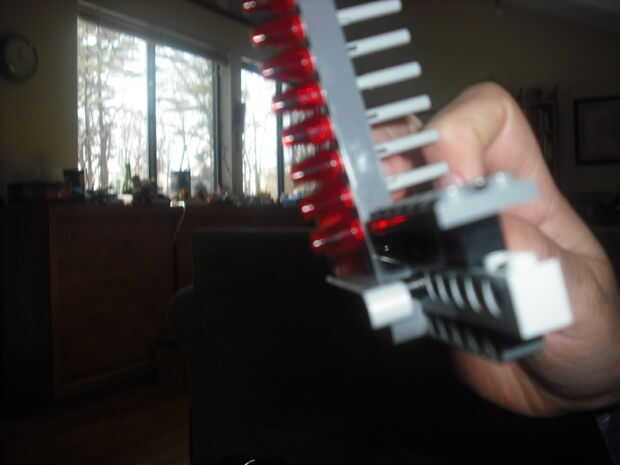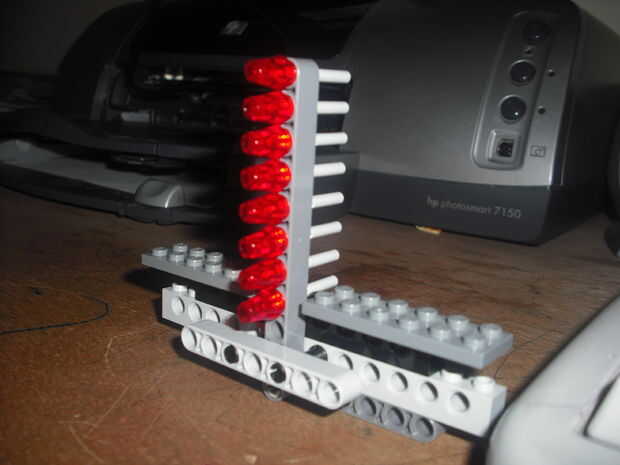 esta pistola de Lego dispara cerca de 20 pies usando un sistema de misiles de revista alimentados flick-fuego. ¡ ADVERTENCIA! youre ojo se daño si apunta a la cara!