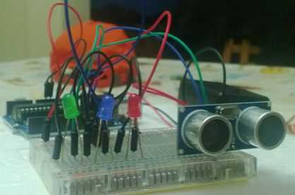 Así, hemos construido un parquímetro de garage para ayudar al conductor haciendo diferentes colores luz LED (diodos emisores de luz).