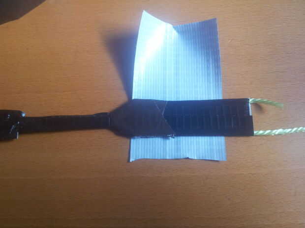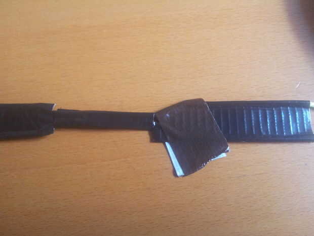 Una vez había envolver cinta alrededor de ella una vez lo hice egain para poner en orden el aspecto y hacerlo más fuerte. Impulsó el cierre a la sección estrecha entonces dobla la tira en la mitad dejando la sección estrecha expuesta con el clip sujetado a él, luego grabó los dos bordes más amplia para asegurar el clip