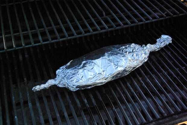 Calentar la barbacoa en medio (sobre 350-400 grados F o 175-200 Celsius para aquellos con un termómetro). Cocinar durante 45-60 minutos.