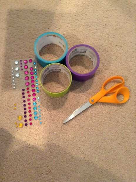 Lo que necesita: tantos rollos de conducto de cinta que desee (menos dos) joyas de plástico tijeras o los montantes (opcional)