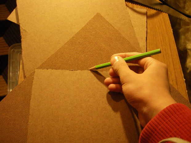 Colocar tu 22cm cuadrados de 22,5 cm en el triángulo central en el paso tres y luego dibujar su línea como se muestra en la imagen.