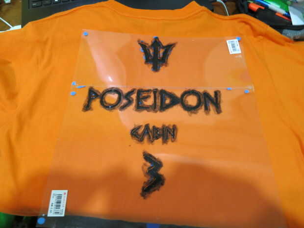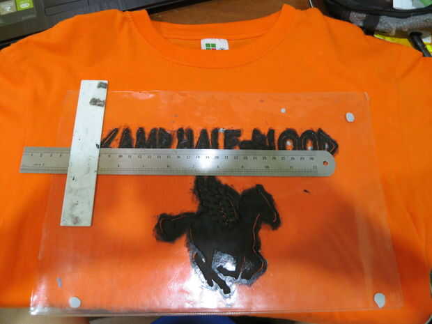 Parte posterior: similar a la parte delantera, coloque la plantilla en la zona media alta de la parte trasera de la camisa. Pero esta vez, la distancia entre la punta del tridente y el collar de la camisa es 4, 5cm. Asegúrese de que la distancia entre las letras "P", "N" y las mangas de las mangas de las camisas son iguales, por lo que la plantilla de 's en el medio. Dar un paso atrás otra vez para comprobar si la plantilla de inclinación. Una vez listo, empezar a pintar!