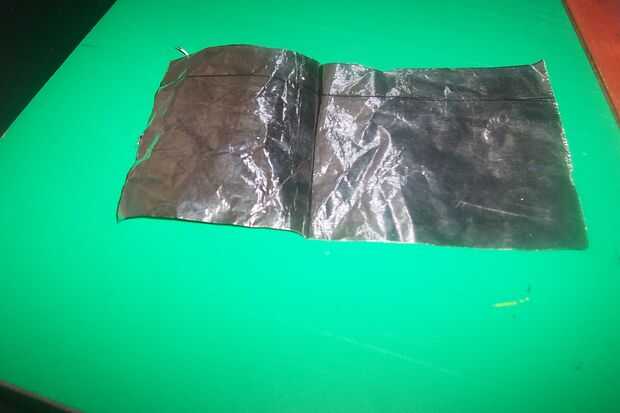 Luego dóblalo 6 3/8 pulgadas desde el lado derecho para formar un ángulo recto