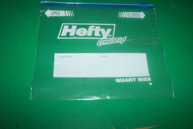 Primer lugar su tarjeta de identificación en la parte inferior derecha esquina de la bolsa Ziploc (Foto 2)