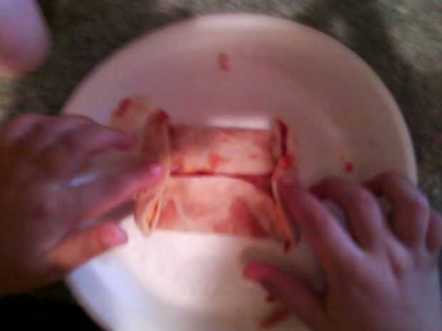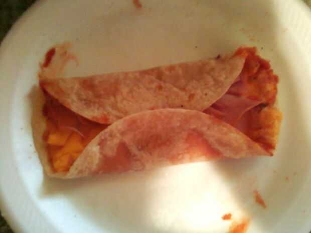 Cuando ha terminado de calefacción y el queso se haya derretido, lo podemos doblar para arriba! Primero tire hacia arriba de dos de los lados opuestos hacia el centro, por lo que uno superpone la otra apenas.