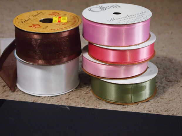 • Una variedad de bobinas de cinta de diferentes colores (mis flores eran todos 5/8 pulgadas de cinta ancha)