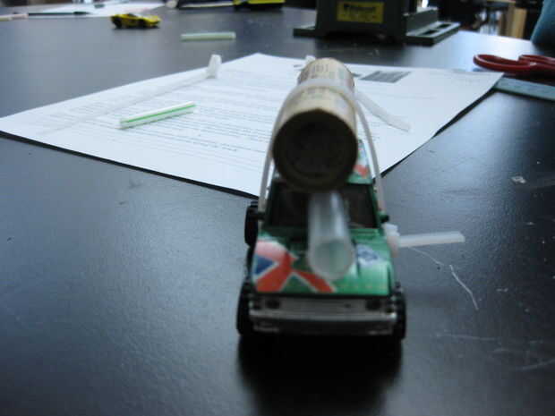 Coche hot Wheels, modelo motor del cohete, paja, pieza de 2 x 4 de madera 15 pies o más, alambre calibre 12, pegamento caliente, cinta aislante, veirner photogates, veirner programa, soportes de 2 L, batería de coche. encendedores de cohete y un cable de encendido para unir al cohete y battey.