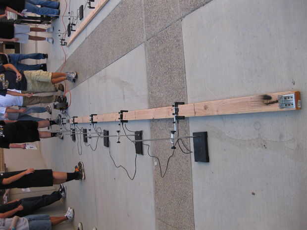 Encontrar la pieza de 2 x 4 de madera de más de 15 pies de largo. Colocar un soporte en L en cada extremo, con todo incluso con otro en cada extremo. Measuer hacia fuera 10 cm de la mendicidad y márquelo. luego mida cada metro después de eso y márquelo. se trata de fueron pones los photogates.
