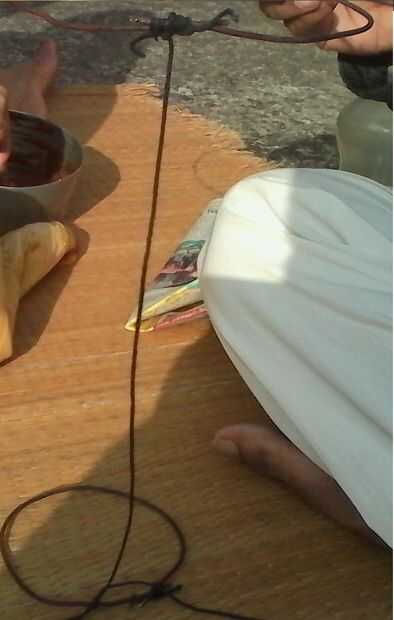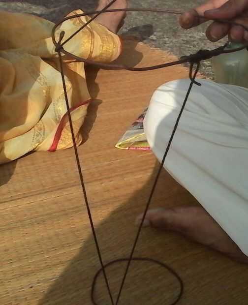 hacer un nudo en la loop.make pequeña otro nudo en el teniendo un height.make de pies otro nudo lazo pequeño como V continuar y hacer patrones zigzag.