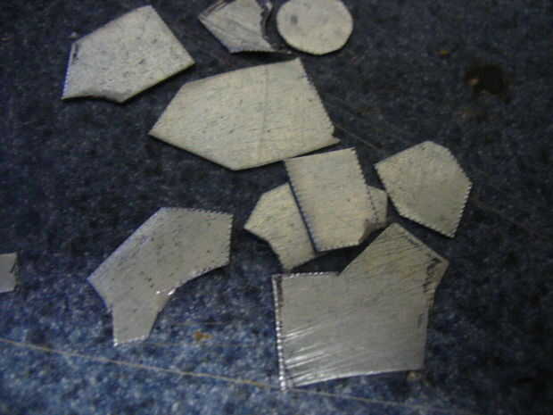 Corte de los diseños futuristas de metal de hoja y pegarlos en el cubo.