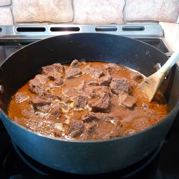 Mi hijo adolescente está siempre pidiendo platos de carne abundante, por lo que he estado haciendo un montón de experimentación en los últimos años. Estoy en medio de intentar algo nuevo y cocinar mi primer guiso carne solo mientras escribo. Tiene un sabor rico, oscuro, con un toque de especias. ¡ Es tan sabroso y delicioso que no podía esperar para compartir!
