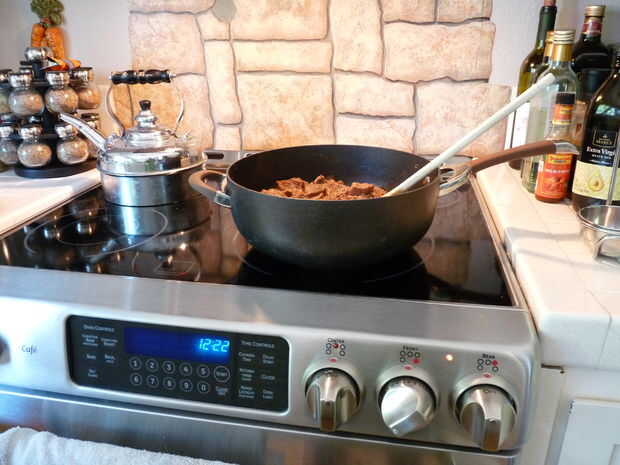 Guiso de carne y bolas de masa hervida es una de las comidas favoritas-comida de mi familia. Durante los años, yo he sustituido ocasionalmente pollo para carne y dos comidas de olla de uno son igualmente deliciosas. Haciendo de estos guisos de carne
