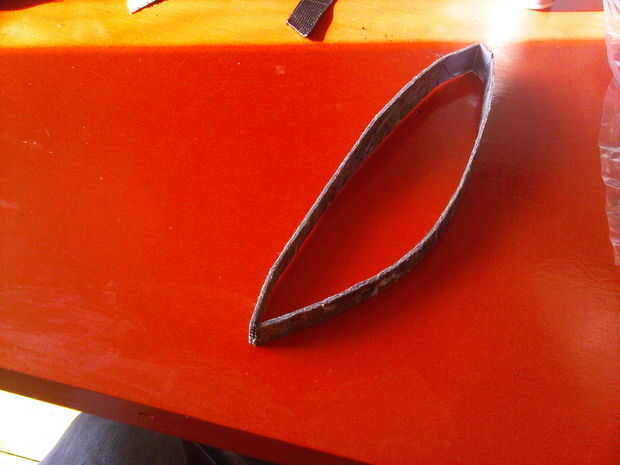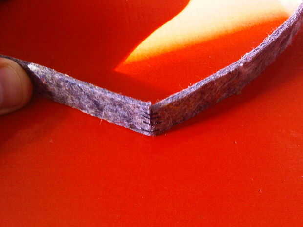 Tomé otro pedazo de hoja de tela reciclado prensado, que es muy difícil, pero aún flexible. Normalmente utilizados para los paneles de absorción de sonido.