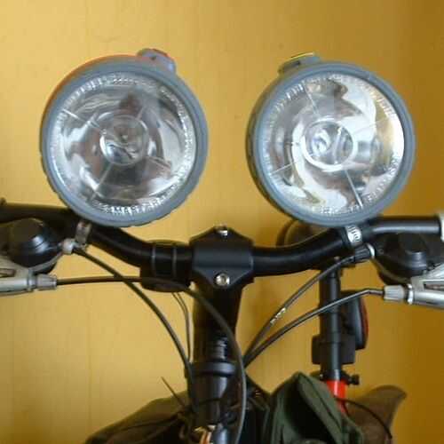 Necesito nuevas luces de la bicicleta para iluminar el camino por delante ciclo sobre un lote de las trayectorias del ciclo apagado y mal mantenidos y también necesito aumentar mi visibilidad en la carretera. Después de que algunos pensaban que decidí un par de calentadores de gran diámetro es la única solución. Sólo deben ser baratos y brillantes.