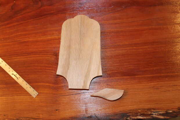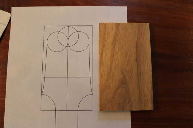 1. usted quiere diseñar su cabezal en el ordenador o dibujar en un trozo de papel de la red. Puede ser tan simple o salvajes como desee, sólo asegúrese de que dejar 2 pulgadas desde la parte inferior del cuello a donde comenzará los clavijeros. Mi cabezal Dulcimer será 1/2" de grosor, 3 1/2" de ancho y 5 3/4" de largo.
