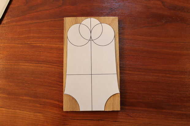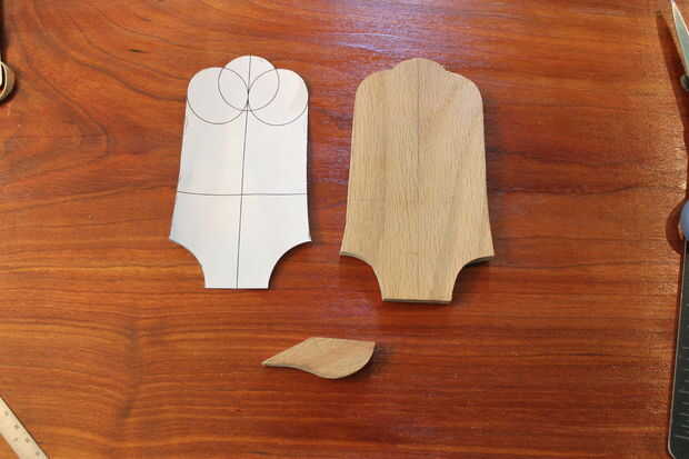 3. una vez que la madera haya secado por completo (imagen 4), transferir o dibujar en su diseño alguna forma que le parezca. Acabo de cortar mi diseño y trazado alrededor de ella (imagen 5.6.7).