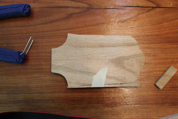 Mayoría de los instrumentos almacén comprado cuellos y muñecas están hechas de una sola pieza de madera. Porque nuestro cuello y cabezal son dos piezas separadas, que tenemos que construir un soporte simple para encolar entre el cabezal y el cuello.