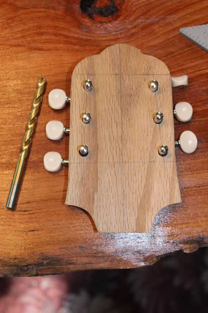 4. Utilice una broca de 9/32" y taladrar los puntos centrales de los ejes del sintonizador (imagen 18).