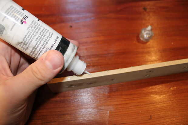 4. Si se hace correctamente las rebanadas de barra de espiga encajará cómodamente en los agujeros. Si no utilizar un poco de pegamento de madera.