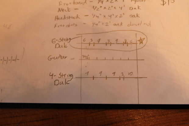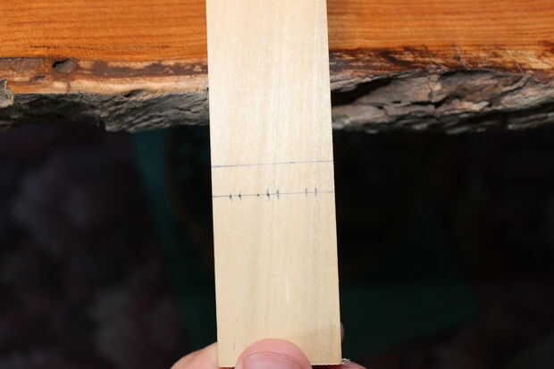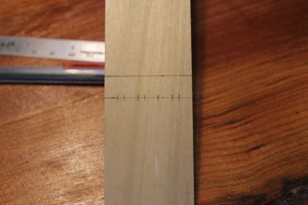 1. Mida y marque una línea en 2 1/8" y 2 1/2" en la madera del diapasón extra. (imagen 3)